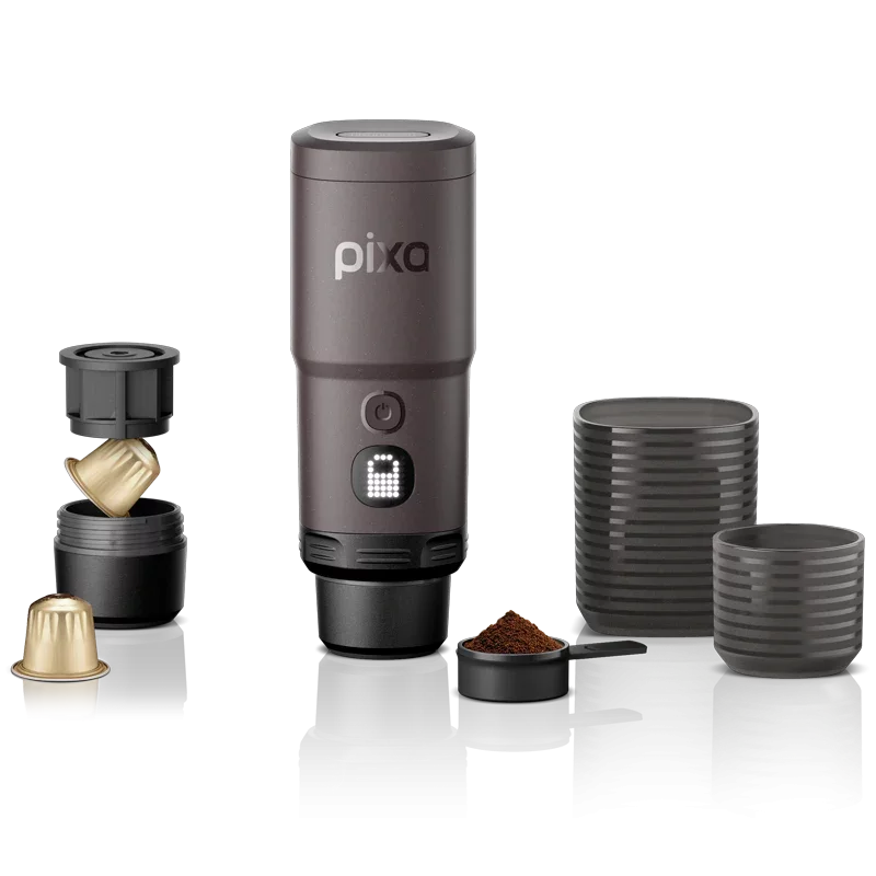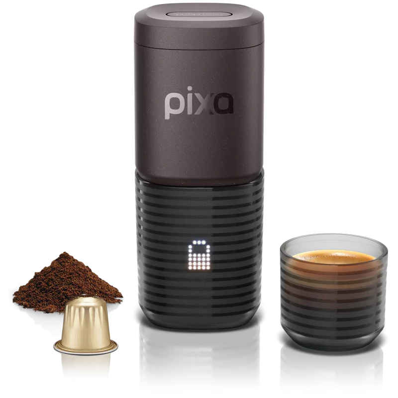 Fully electric and portable: The Pixapresso heats water and brews coffee automatically, eliminating the need for an external heat source.