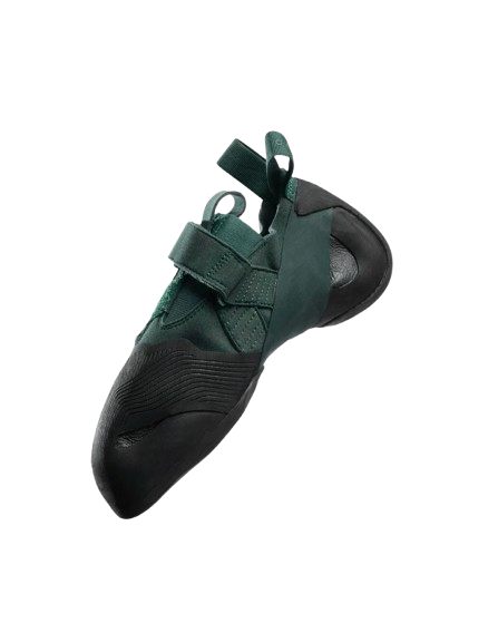 Системата за закопчаване включва две велкро ленти, които осигуряват сигурно и персонализирано прилягане. Твърдата междинна подметка подобрява стабилността при стъпване на ръбове, а специално разработената гума предлага отлично сцепление и триене на различни скални повърхности.
