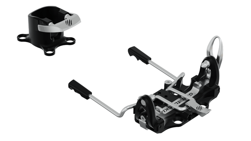 Новият механизъм на петата осигурява безопасно странично и вертикално освобождаване на ски обувката. В режим на изкачване е възможна регулация на позицията на крака.