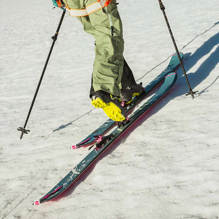 Лекото ядро от дърво Karuba, комбинирано с пълен карбонов плат, осигурява здравина и стабилност без излишно тегло, което прави изкачването по-лесно, а спускането — по-отзивчиво и забавно. Рокер профилът на върха и опашката подобрява плаваемостта и започването на завоя, докато плоската опашка и средната твърдост осигуряват надеждно сцепление и контрол при променливи снежни условия.